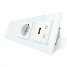 Сенсорный проходной выключатель розетка с заземлением USB Livolo цвет белый стекло (VL-C701SC1EU1USBC1A-11)