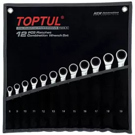 Набор ключей с трещоткой и шарниром комбинированных TOPTUL 12ед. 8-19мм в чехле GPAQ1204