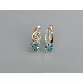 Серьги из серебра Sil с золотыми вставками 129s Прозрачный (Sil-814)