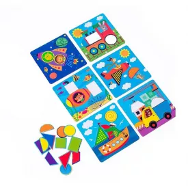Игра настольная из древесины Vladi Toys Мозаика Транспорт 6 игральных оснований 12 фигурок Разноцветный (115596)