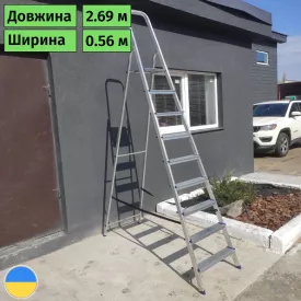 Стремянка 2 м алюминиевая односторонняя на 9 ступеней Стандарт | 3500 грн |