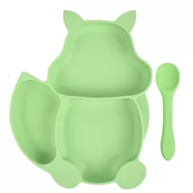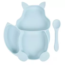Набор силиконовая трех-секционная тарелка в форме белки ложка 2Life Y5 2 шт Голубой (n-10004)