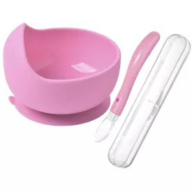 Набор силиконовая круглая тарелка для первых блюд и ложка 2Life Y12 2 шт Розовый (vol-10165)