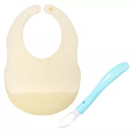 Силиконовый слюнявчик 2Life 23х30 см Желтый и термочувствительная ложка вилка Голубой (vol-10510)