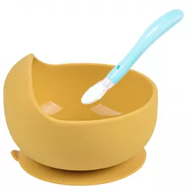 Силиконовая миска и ложка A-PLUS для ребенка Набор 2 в 1 для прикорма Бежевый 2207