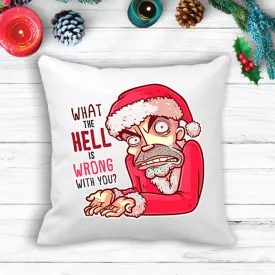 Подушка с новогодним принтом Дед Мороз "What the hell is wrong with you?" Белый Кавун П003591