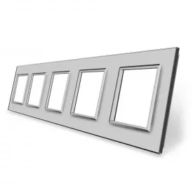 Рамка розетки Livolo 5 постов серый стекло (VL-C7-SR/SR/SR/SR/SR-15)