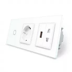 Умный сенсорный проходной выключатель 1 сенсор 1 розетка 1 USB 1 розетка универсальная белый стекло Livolo