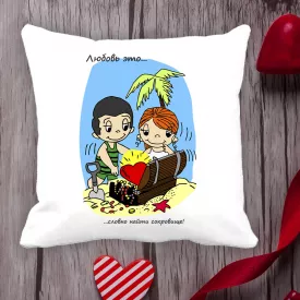Подушка с принтом Love is "Любовь это ... ждать, что бы он позвонил" Белый Кавун П000023