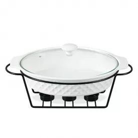 Мармит керамический овальный с черной подставкой 32,5 см Maestro MR-11359-74