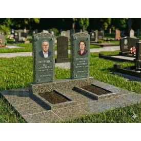 Подвійний пам'ятник з зеленого граніту з відмосткою