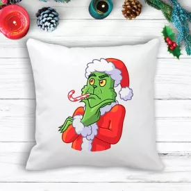Подушка с новогодним принтом Гринч The Grinch "Задумался" Белый Кавун П003611