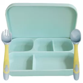 Набор силиконовая тарелка трёх-секционная слюнявчик ложка вилка 2Life Y25 4 шт Оранжевый (vol-9909)