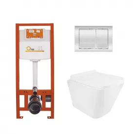 Набор Qtap Инсталляция 3 В 1 Nest Qt0133M425 С Панелью Смыва Квадратной Qt0111M06029Sat + Унитаз С Сиденьем Crow Qt05335170W