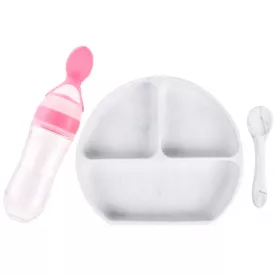 Набор силиконовая 3-х секционная тарелка ложка бутылка-ложка Y1 2Life 3 шт Белый/Розовый (vol-10015)