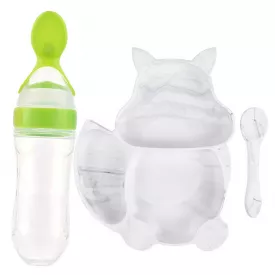 Набор силиконовая 3-х секционная тарелка ложка бутылка-ложка 2Life Y1 3 шт Белый (vol-10019)