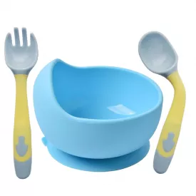 Глубокая тарелка 2Life Y9 350 мл Голубой и термочувствительная ложка вилка Желтый (vol-10530)