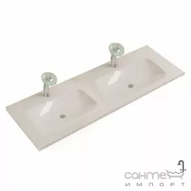 Столешница из искусственного камня белая с двумя раковинами Квадро для тумбы Marsan 1500-2