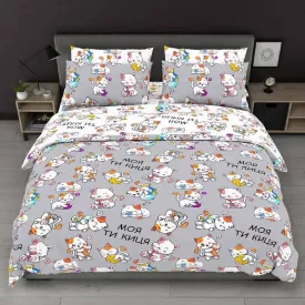Постельное белье Кот Муркот Двухспальный с одуванчиками 180х220 см Серый (VD_Долина_вітрів_Д)