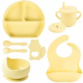 Набор детской посуды 2Life Волна Y12 8 предметів та прорізувач Динозавр Рожевий (v-12052)