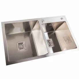 Кухонная мойка Platinex Handmade 78*43 HDB, на две чаши (с сифоном, диспенсером и креплением), Нержавейка