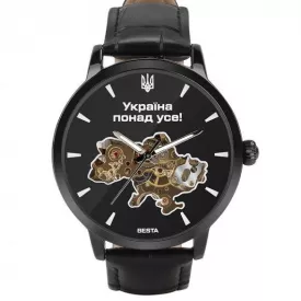 Чоловічий наручний годинник BESTA Skeleton UA Чорний