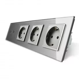 Сенсорний ZigBee вимикач 2 сенсора 3 розетки сірий скло Livolo (VL-C702Z/C7C3EU-15)