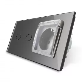 Сенсорний вимикач 2 каналу Розетка з кришкою IP44 Livolo сірий скло (VL-C702/C7C1EUWF-15)