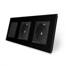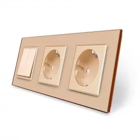 Двоклавішний вимикач із подвійною розеткою золотий скло Livolo (VL-C7C2EUK2-13)