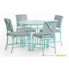 Меблі Pradex Verona комплект для кафе круглий столик + четвірка стільчика бірюзового кольору