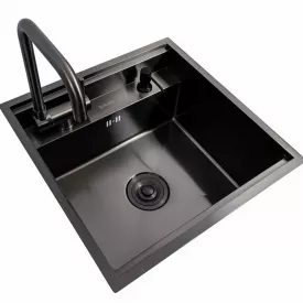 Кухонна мийка прихована Platinex Handmade CM 50*50 PVD (зі змішувачем, сифоном, кріпленням та диспенсером), Чорний