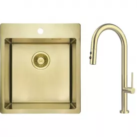 Кухонная мойка Deante Olfato ZPO_R10A 505х450 врезная, золото + смеситель BQO_R72M (ZPOER10A)
