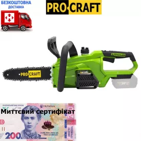 Акумуляторна пилка ланцюгова Procraft PKA24Li тушка (щіткова, 1 шина (152мм), 1 ланцюг, без 1 АКБ, 1ЗП) | 765 грн |