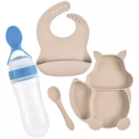 Набор 2Life Y24 силиконовая 3-х секционная тарелка, слюнявчик, ложка, бутылка-ложка Бежевый (vol-10014) 590 грн/шт Купити