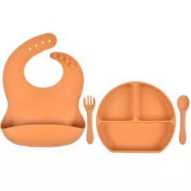 Набор силиконовая тарелка трёх-секционная слюнявчик ложка вилка 2Life Y25 4 шт Оранжевый (vol-9909) 590 грн/шт Купити
