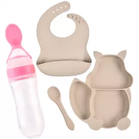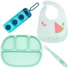 Набір силіконова тарілка килимок, силіконовий слинявчик і ергономічна силіконова ложка (vol-1103)