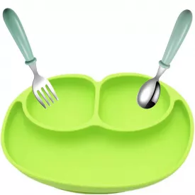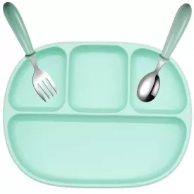 Набор силиконовая тарелка коврик и Силиконовая ложка VOLRO 2 шт Голубой/Салатовый (vol-1716)