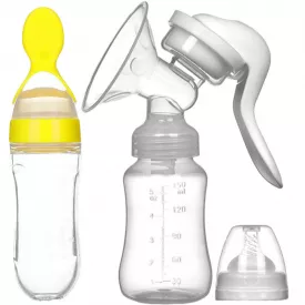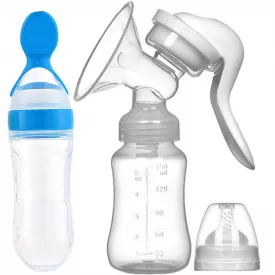 Ручной молокоотсос с соской Purple Berry Rabbit 150 мл Белый и Силиконовая ложка Розовая (v-11679)