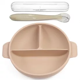 Набор трёх-секционная силиконовая тарелка ложка вилка 2Life Y12 3 шт Персиковый (vol-9768) 418 грн/шт Купити