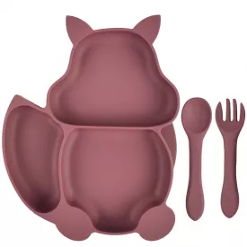 Набор силиконовая трех-секционная тарелка в форме белки ложка 2Life Y4 2 шт Лиловый (vol-10003)