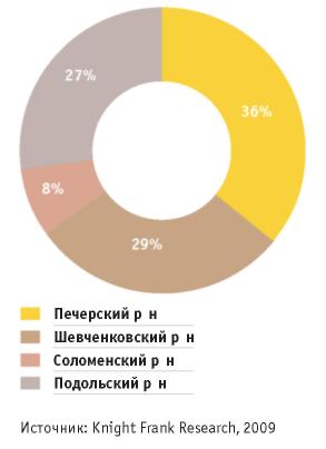 Структура предложения на первичном рынке элитной недвижимости по районам Киева, % от общего количества квартир