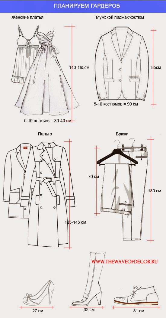 Шаг 8. Измерить длины самых длинных платьев, пальто, чтобы понять какие отделения планировать под "длинномеры".
