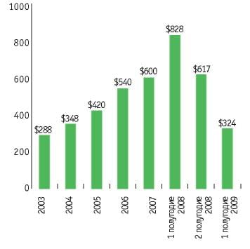 За первое полугодие 2009 года ставки снизились в среднем на 35% от уровня IV квартала 2008 года.