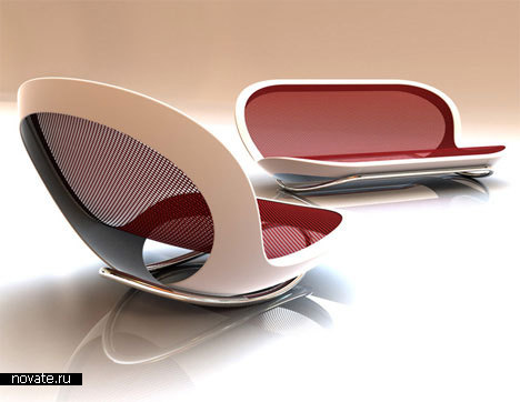 Якщо чесно, мені здається, що за рахунок цього крісло саме позбавляється найголовнішого - родинності, домашнього затишку. Хоча, напевно, це лише перші враження. Варто нам сісти і покачатися, як всі вони розвіються - адже крісло обіцяє бути зручним. Також як і диван, який теж має дуже футуристичний вигляд. Симпатичний і оригінальний погляд на меблі у дизайнера, це не може не радувати.