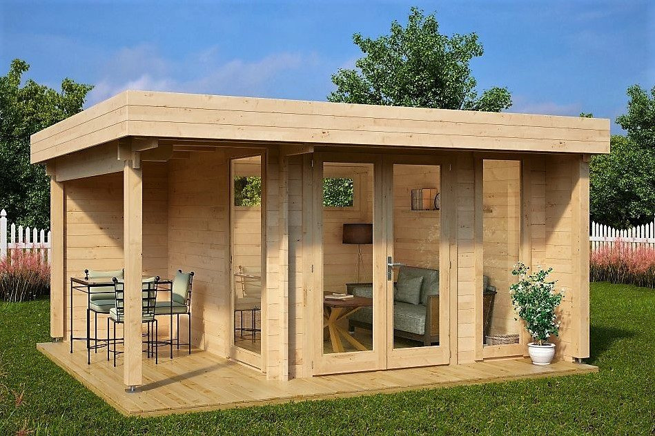 Закрытая беседка из бруса 3х3 с открытым навесом 3х1,5 от производителя Киев