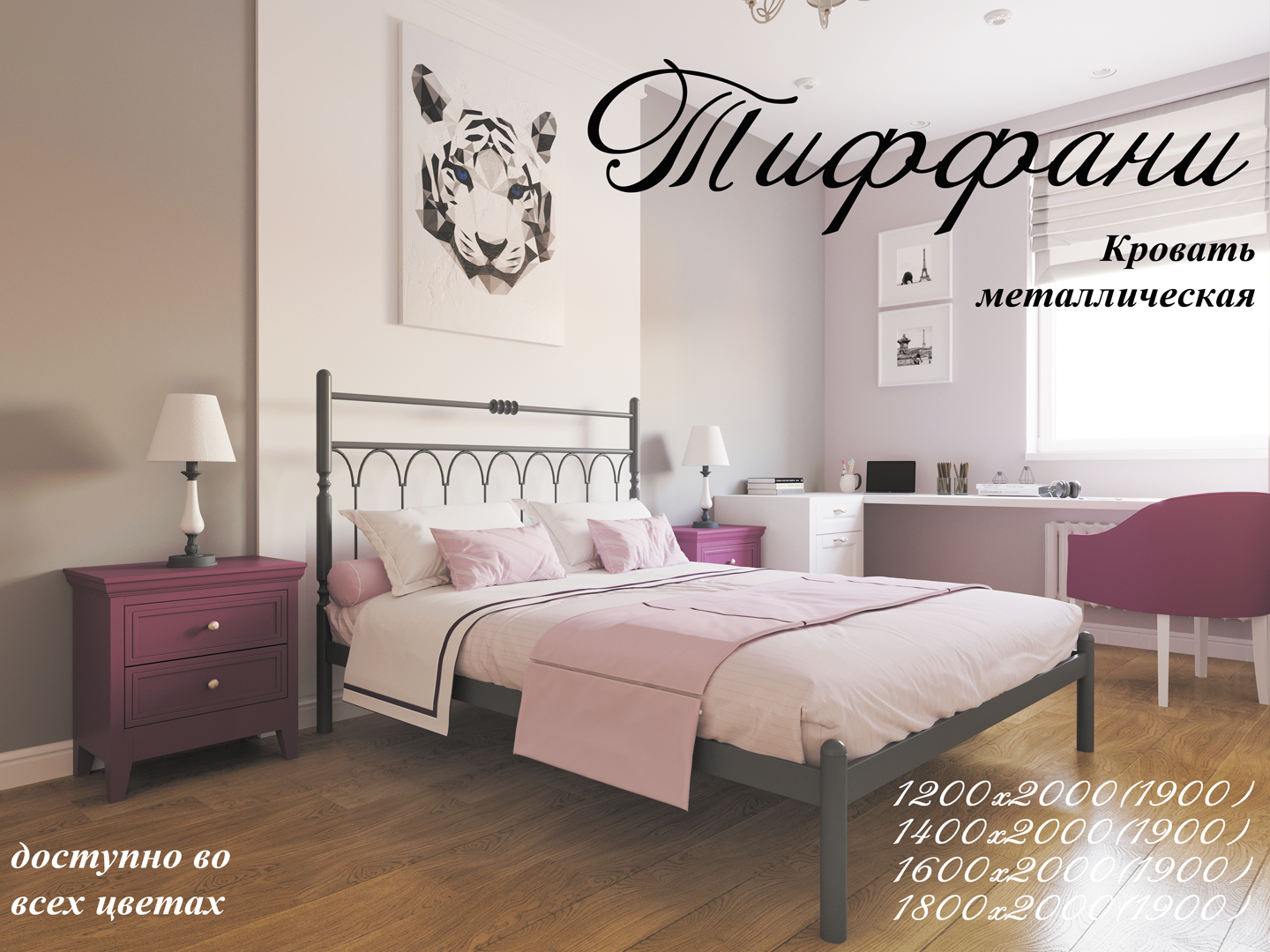 Ліжко Метал-Дизайн Тіффані 1900(2000)х1600 чорний оксамит