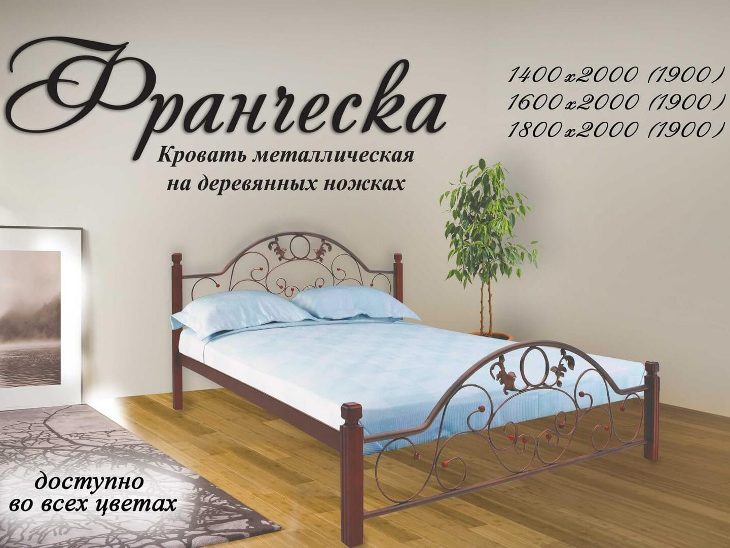 Ліжко Метал-Дизайн Франческа на дерев'яних ногах 1900(2000)х1800 мм чорний оксамит