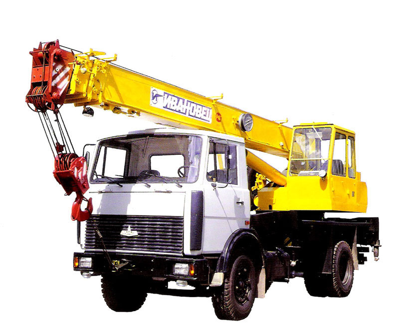 Автомобільні крани збираються на шасі вантажних автомобілів, що серійно випускаються, з установкою на рамі передніх і задніх виносних опор для забезпечення стійкості при роботі крана з вантажем і підвищення вантажопідйомності. Вони можуть самостійно пересуватися грунтовими дорогами і долати підйоми до 20с.
