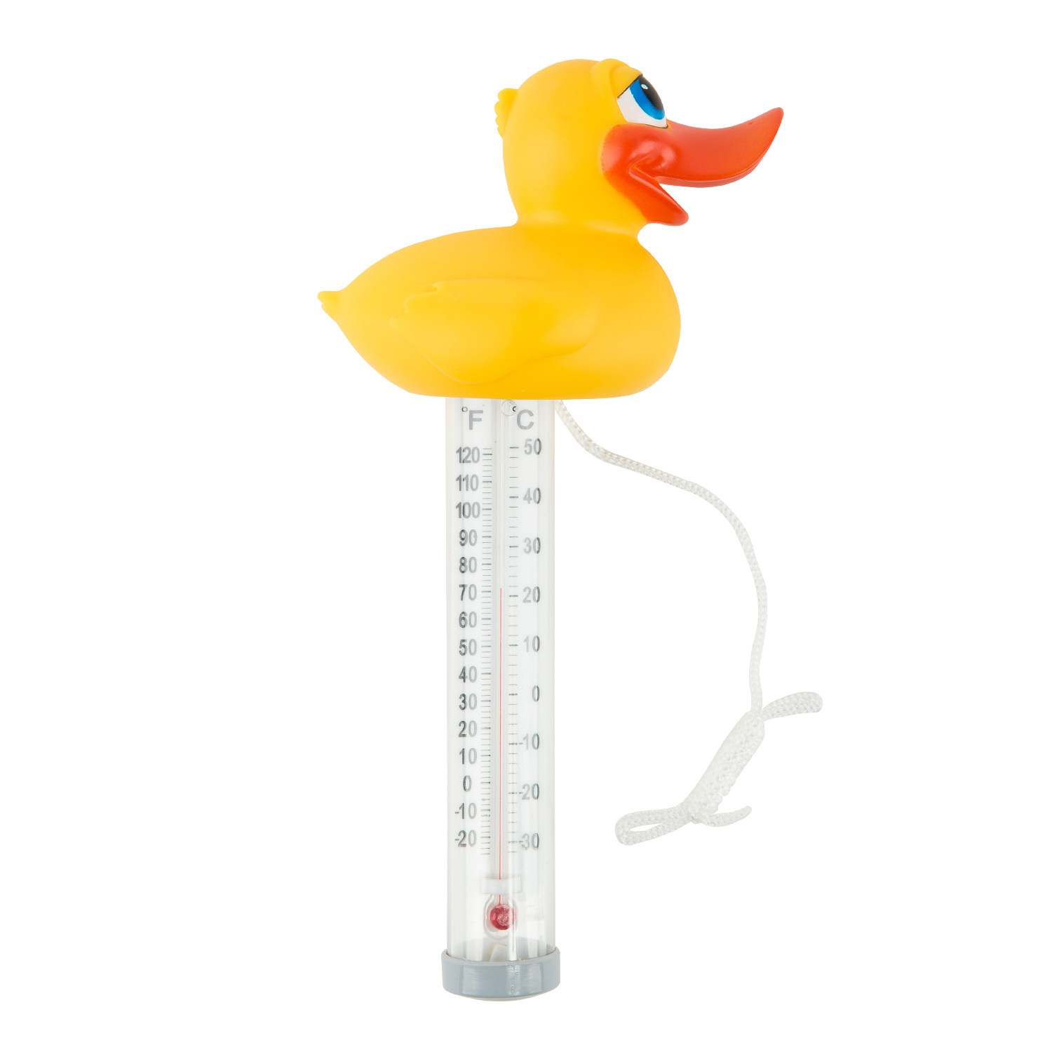 Плавающий термометр Kokido K785BU/6P для бассейнов в виде утки. Изготовлен из безвредного полимера, не содержит стекла, ртути или острых частей. Имеет две шкалы - Цельсия и Фаренгейта. Оснащен плавающим шнурком для крепления к стенке бассейна.