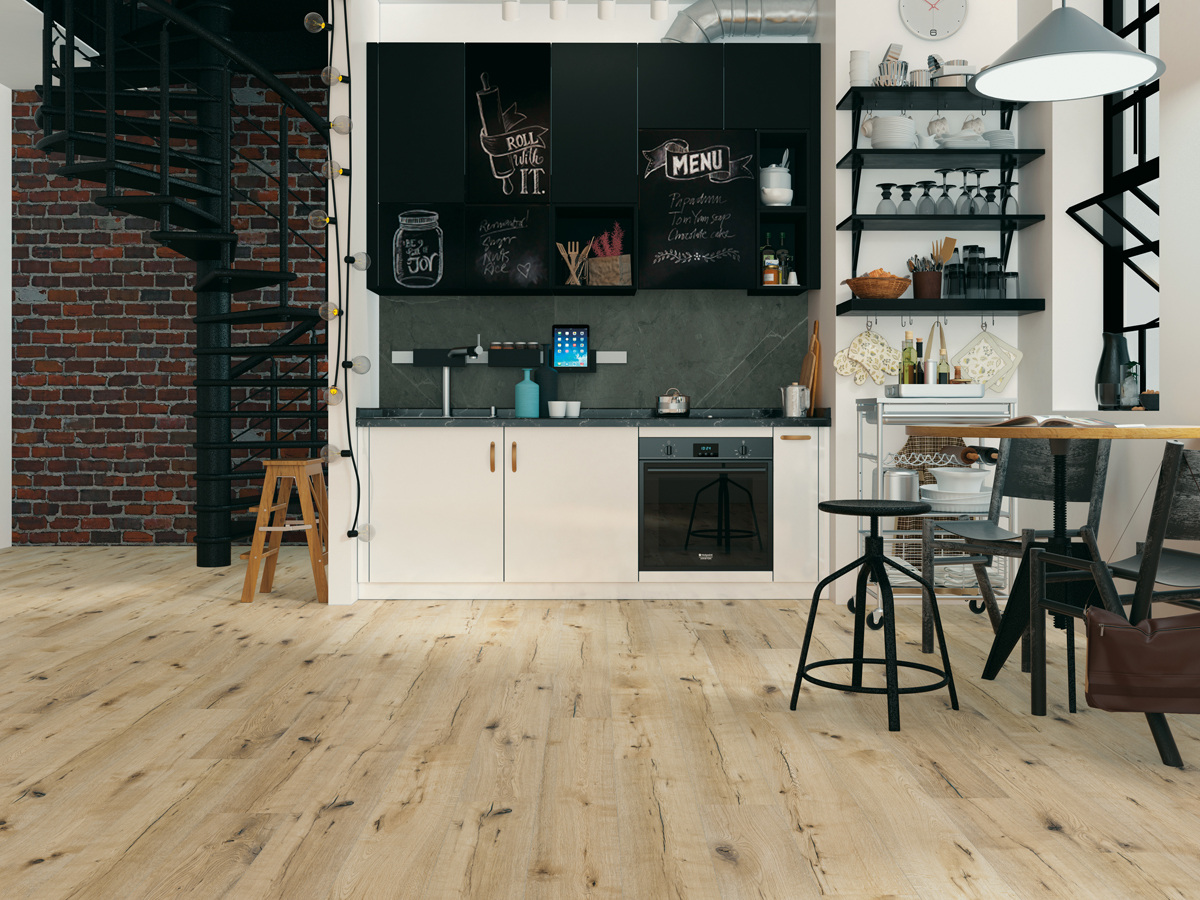 Виниловое покрытие от Ceramin — отличное решение для жилых помещений, включая кухню и ванную комнату.
